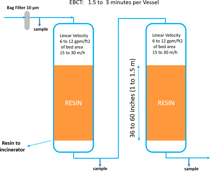 The success of these sorption technologies may also be influenced by the influent’s water quality parameters, such as pH, temperature, and the presence of competing ions. As a result, pretreatment steps — such as coagulation, precipitation, and filtration — may be necessary to optimize the efficiency of these sorption processes, as shown in the flow diagram below.